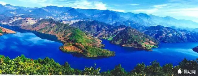 白莺山下的漫湾电站形成的澜沧江百里长湖,对面是古树葱葱的无量山。