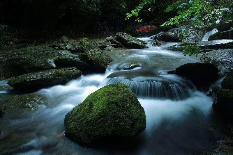 梵净山主峰似乎没什么水景,不过下得山来,花几元钱坐景区班车就可以去亚木沟欣赏清澈迷人的水景。亚木沟是梵净山的一条主动脉,清流奔腾,柔肠百转,承载水流的要么是页页岩,要么是紫袍玉带石,其美幻足以醉人。亚木沟的水是梵净山的云雾做的,本性澄澈,又跌宕起伏。顺着峡谷行走,用慢门来拍摄形态丰富的流水,诗意的水便有了与之相悦的表达方式。