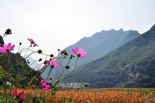 相比较大多数的北方村落,定襄美的有点秀气。还未进入村子,眼前就已是一亮。数十公里的峡谷绵亘悠长,谷底奔腾的滹沱河宛若游龙。青山对峙间野花盛放,好一派田园风光。