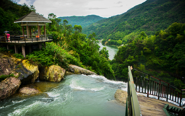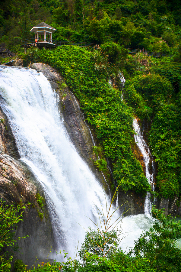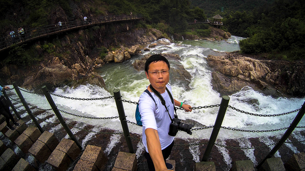 最刺激惊险的几个角度,一个便是观瀑亭,一个便是亭对面的栈道。顺着瀑丛而下,流速很快,驻足观赏,却有一种时间如逝水。