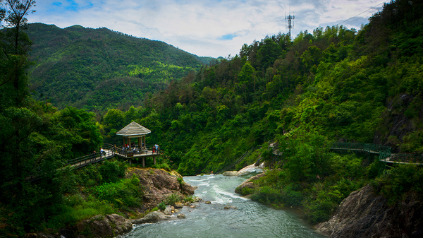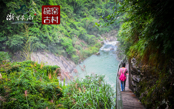 三折瀑丛随鳌江,碗窑村留古陶坊。吊脚楼栖深山中,世代衍息绿水旁。