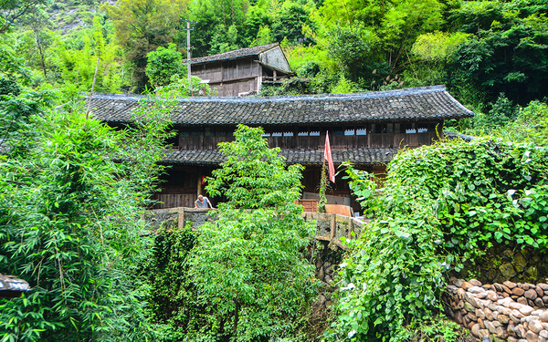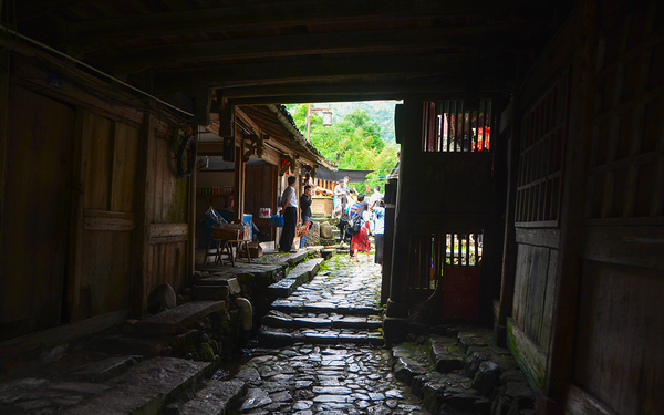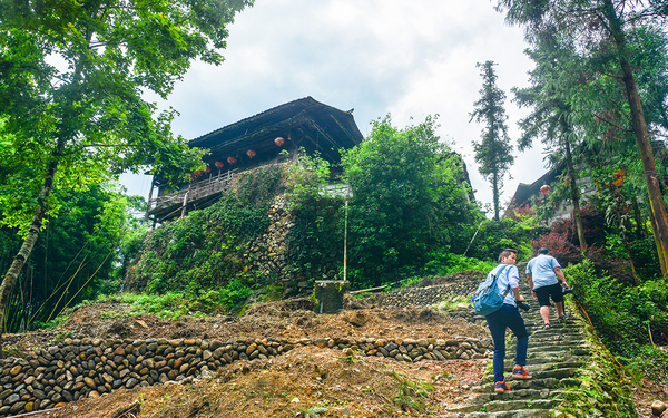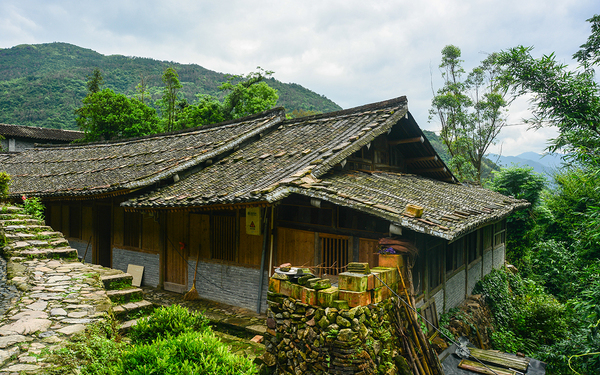 村中的房子依地势而建,一条蜿蜒曲折的山道将它们串联起来,清朝初年的吊脚楼、二层的小木楼错落有致、形态各异,仿佛一条朴实珠链上点缀的饰物,古拙而充满韵味。吊脚楼为半干栏式建筑。