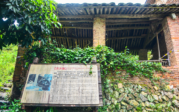 这一渠水,便是引自三折瀑上游水库,如今流经在村中,主要还是引入到水碓坊。借用水流冲力,把水轮车转动,这取之不尽用之不竭的瀑布山水,为碗窑村制陶,提供了几百年的便利。可见300多年前,匠人们不仅技艺精湛,智慧更是无穷。