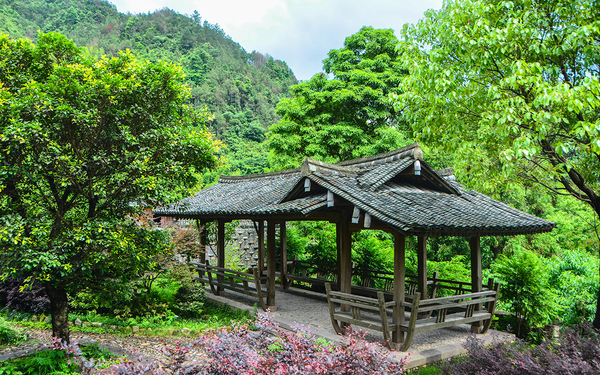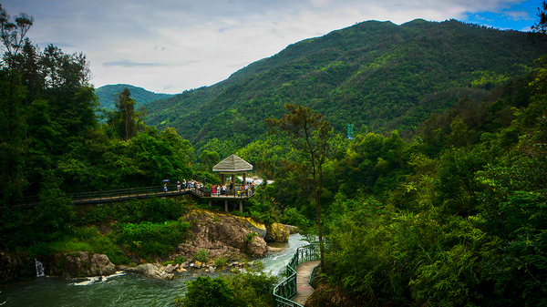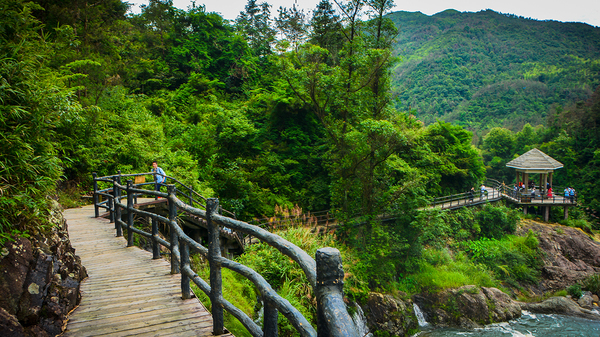 不像雁荡山那般群瀑、碧潭、幽峡、奇岩,但风光旖旎,密林郁郁葱葱,是一个修身养性的幽静之地。