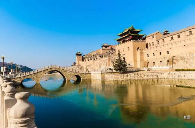 河水护城,群峰环绕,苍松翠柏,层楼叠院,高低错落,屋依着城,城偎着山,粗犷雄伟,山光水色,一幅质朴大气、古韵悠悠的画卷。