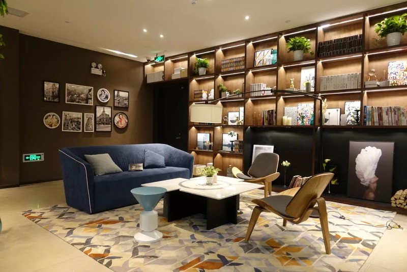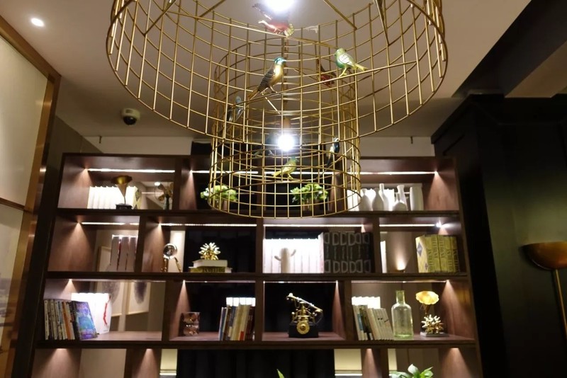 除了精心挑选过的书籍,书架上还有留声机、复古电话、水晶灯等装饰小摆件,从细节中,你都能感受到酒店设计师的用心。