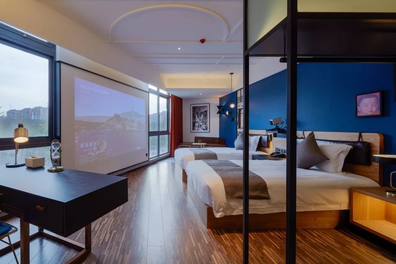 小飞君觉得房间最赞的设计,就是用巨幕投影仪代替了电视机,让你躺在床上就有堪比在电影院里看电影的视听体验。不管是新片还是经典老片,都能通过酒店提供的会员账号联网搜索到。