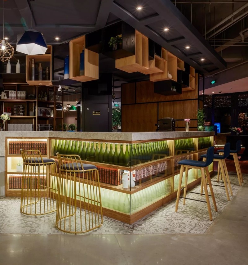 到了夜晚,大堂接待处的背面变成为了酒店的小酒吧,来此小酌一杯,和朋友聊聊天,城市寒冷的夜晚也变得温馨了许多。