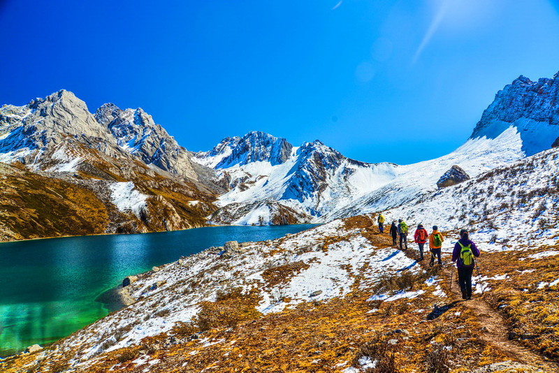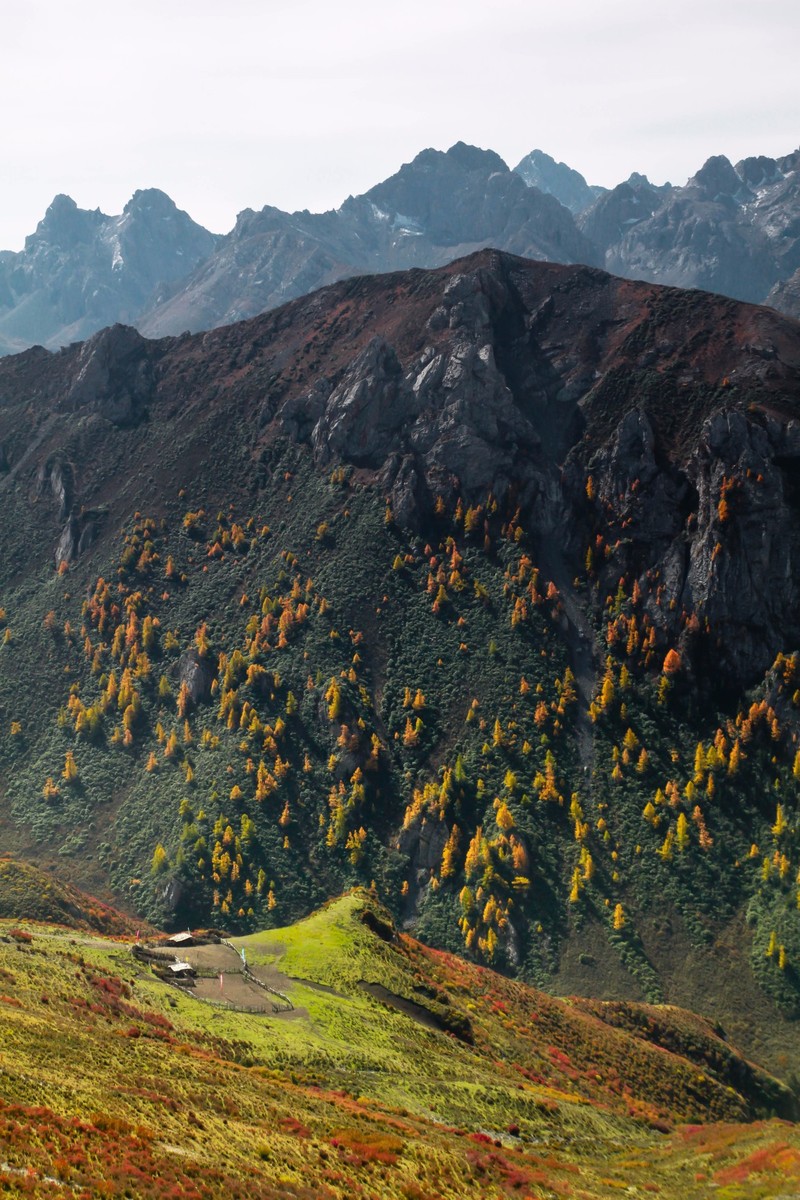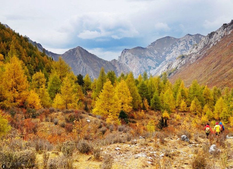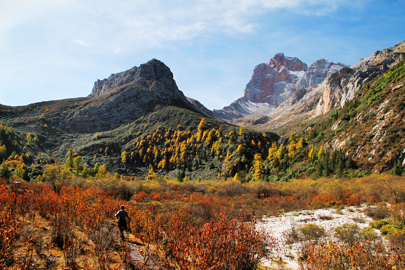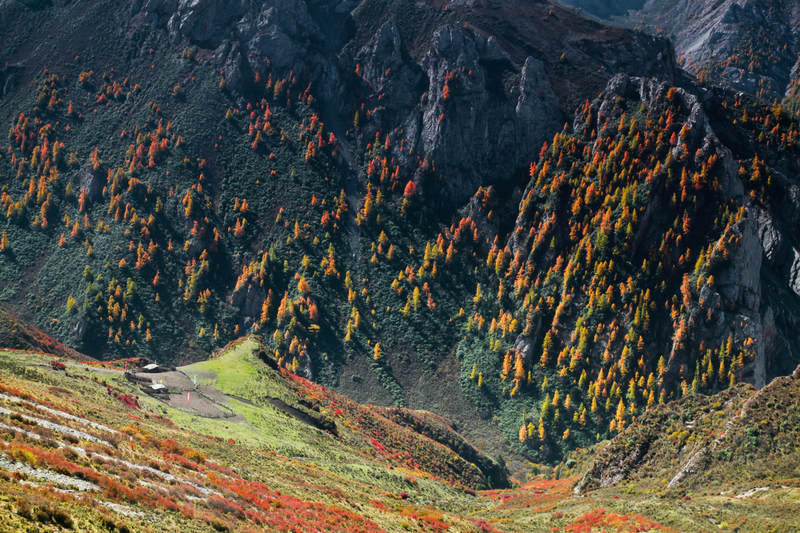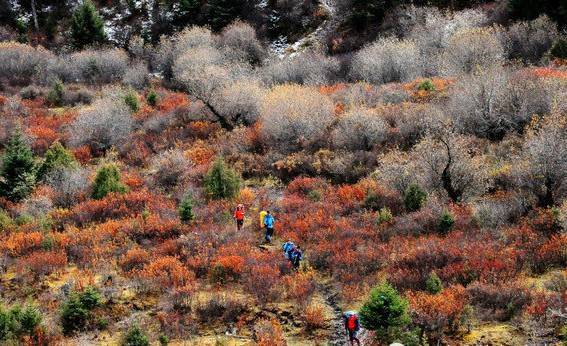 秋季满沟斑斓,红叶黄草绿水雪山,勾画出天地间五彩的画卷。