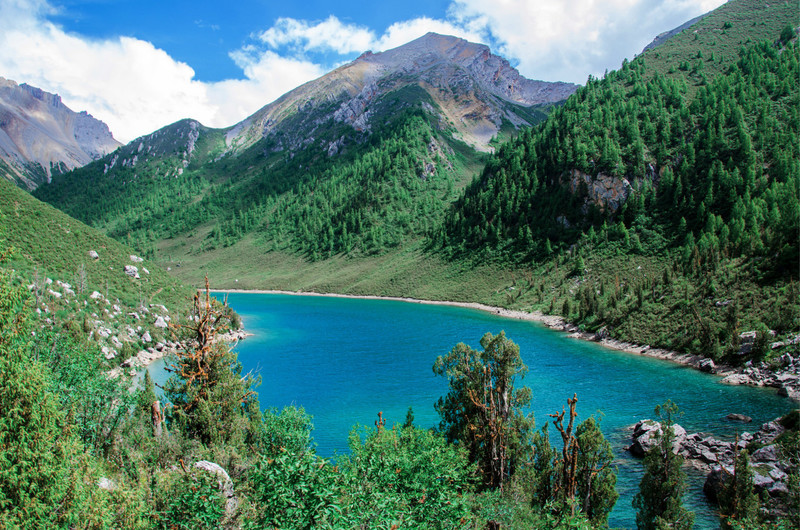 穿越七藏沟,伫立海子前,仰观雪山,远看山林,俯视湖水,醉心不已。