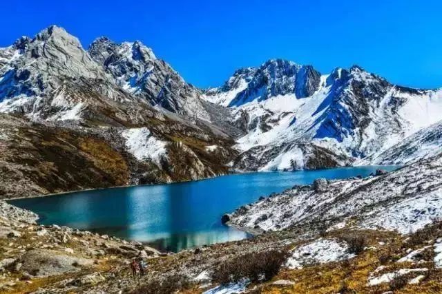 冬季,整条沟披上了银装,此时不变的还是那一湾蓝蓝的湖水,静谧至极。