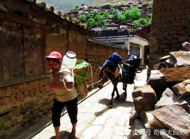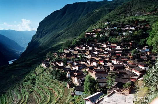 它之所以出名是因为百余户人家聚居在一座独立的蘑菇状巨石之上。它位于丽江城北110公里的金沙江峡谷中。