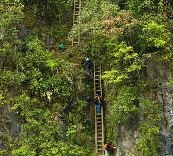 早年古路村本是没有路的,一直以来,他们依靠双手,顺着几乎垂直的陡岩和树藤楼梯与外界保持往来,来回一趟少说也要8个小时,是名副其实的“悬崖村”。