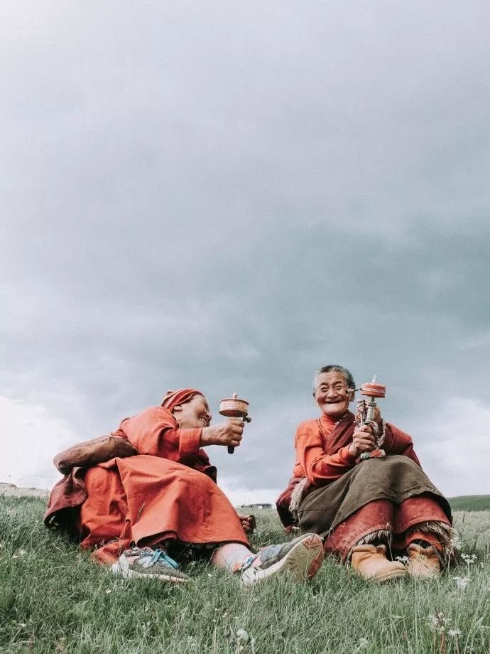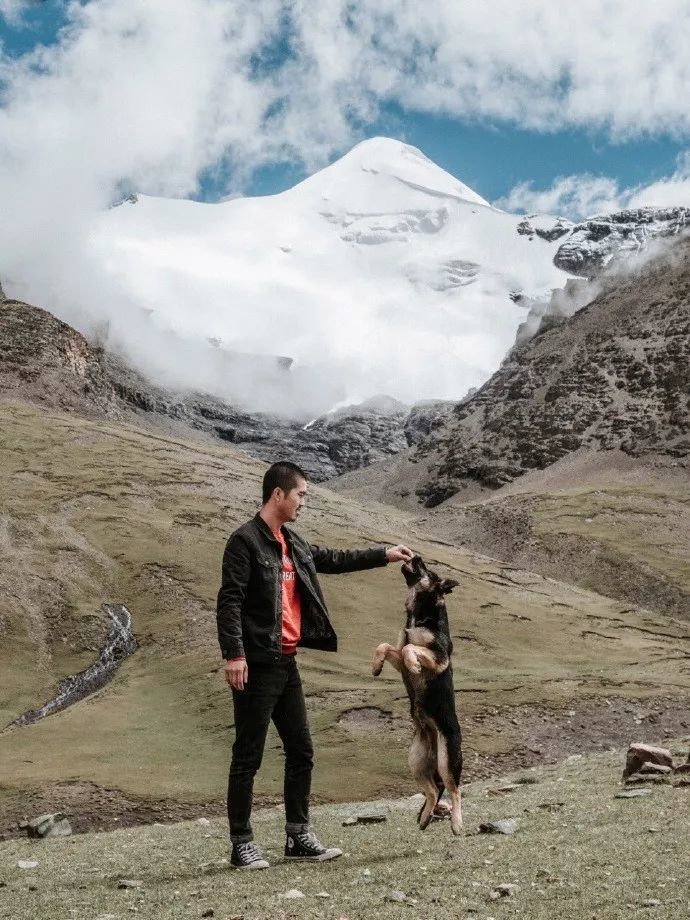 看到一个藏族小姑娘和土拨鼠玩在了一起