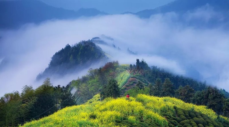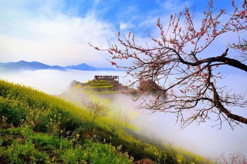 每年春季,是石潭村最美的季节,油菜花、桃花、梨花、漫山遍野,晨暮之间云雾弥漫,再加上忽隐互现的古朴村庄,组合成了一幅美妙画卷。