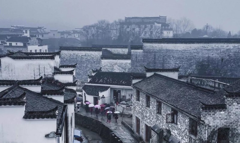 典型的徽式建筑,层层叠叠,迂回婉转,回环往复的巷子,规模不一的祠堂,吸引了大批游客汇聚至此。