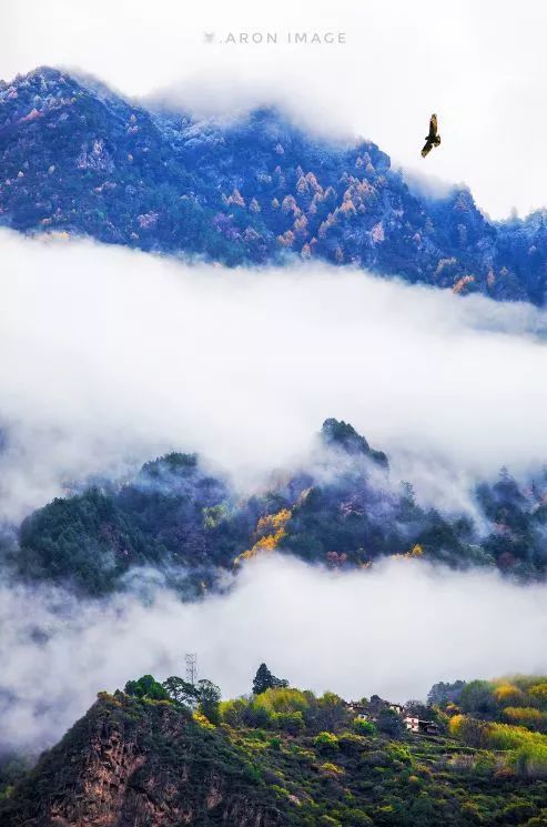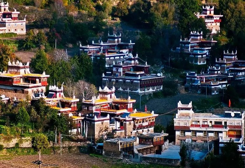 藏寨从大金河谷层层叠叠向上攀援,一直伸延到卡帕玛群峰脚下。