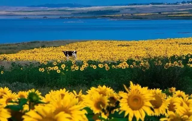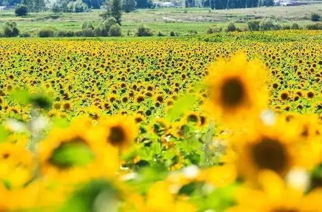 在阿勒泰万亩向日葵中穿行,金灿灿的花海中一颗棵向日葵像高傲的士兵,只见明媚,不见忧伤,整个人会莫名地感到一种振奋人心的力量。
