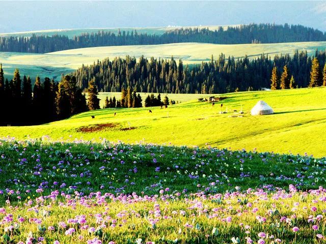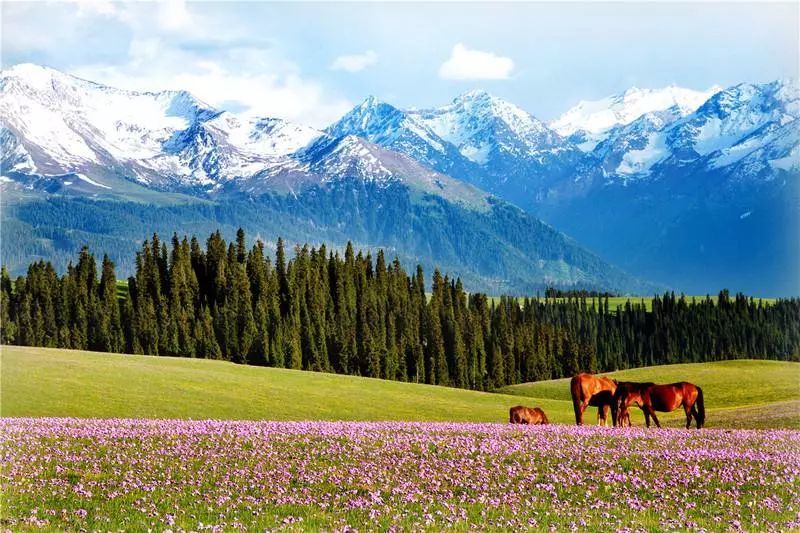 那拉提草原集雪山、草原、森林、花海于一体,简直人间仙境。