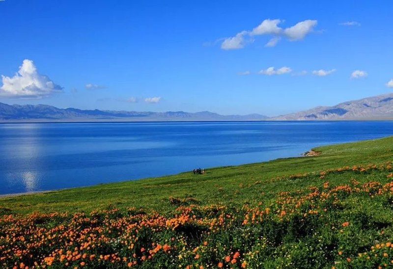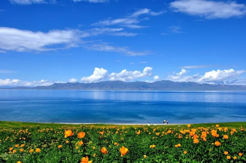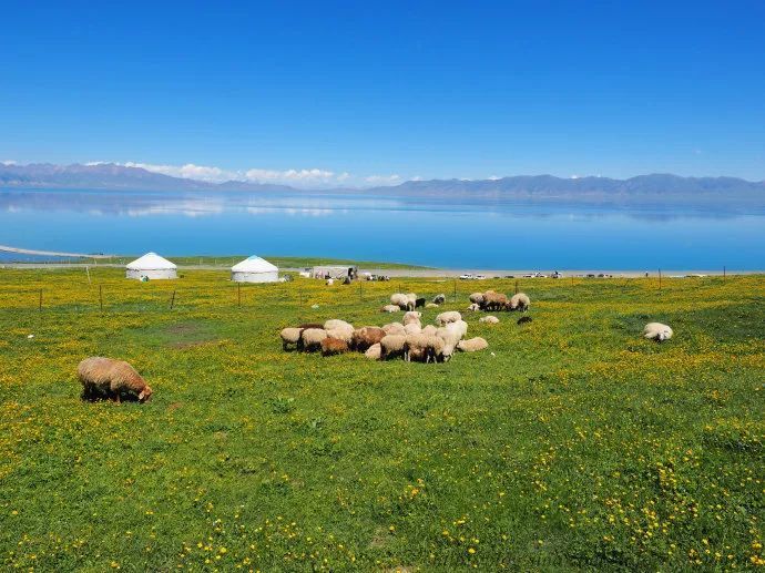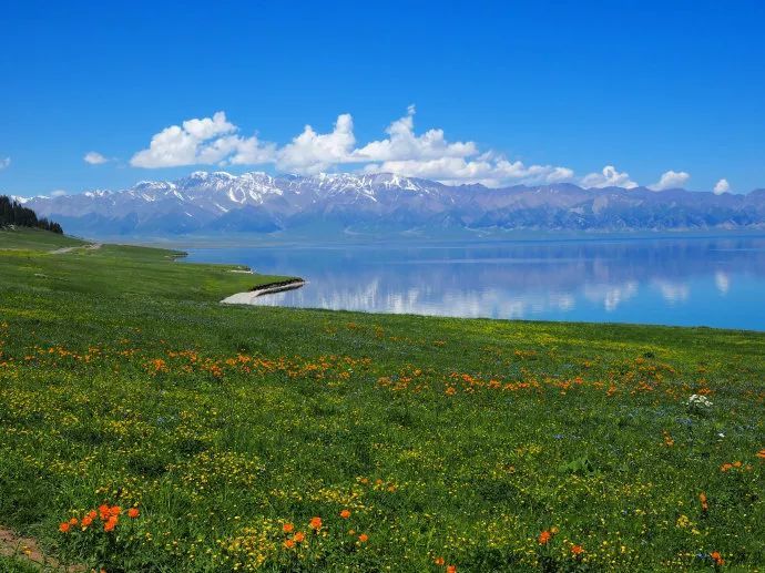 每到六七月份,湖边草原上开遍了各色的野花,更是不可错过的盛景。