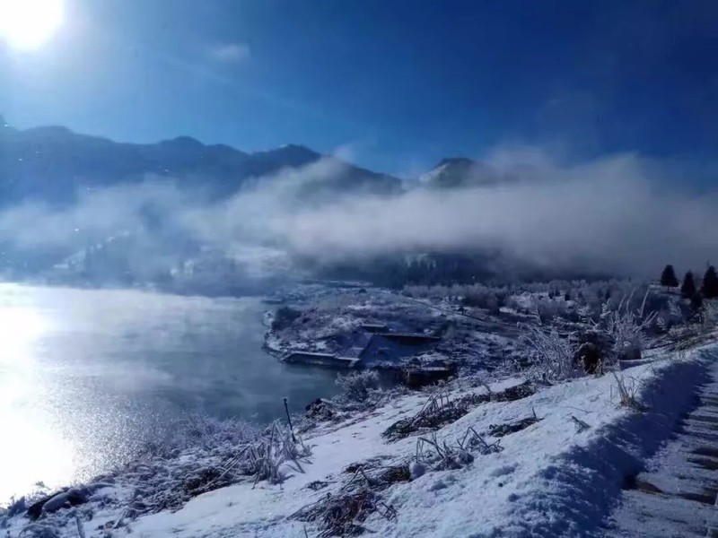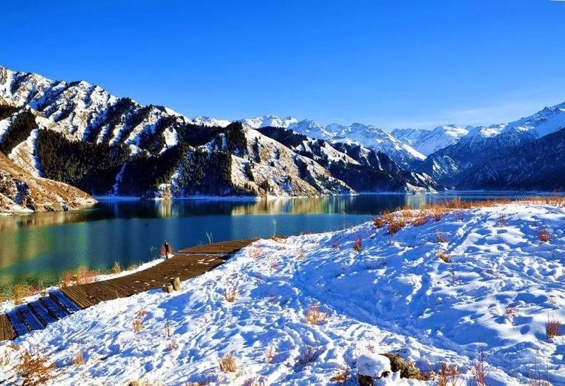 十二月开始,天池就变成一面亮亮的大镜子,有了一份“世湖皆醉我独醒”的味道。