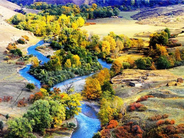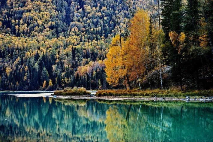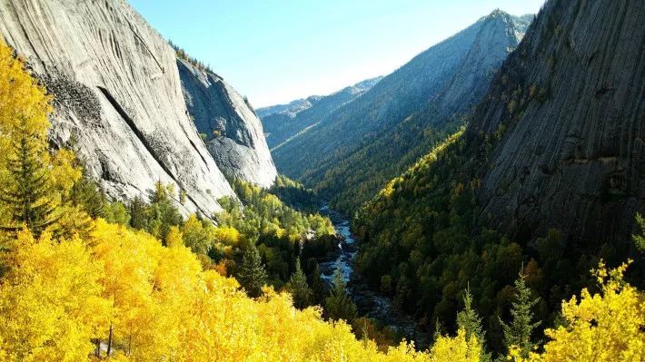 在峡谷之间还有大面积的桦树、杨树和松树林,最适合秋天前来。