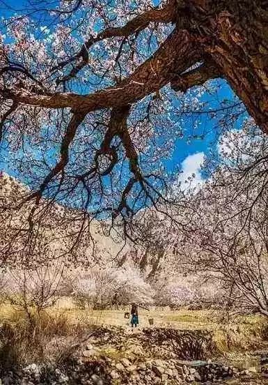 三月,百年杏树遮天蔽日,云霞般的花朵怒放,恍若仙境。