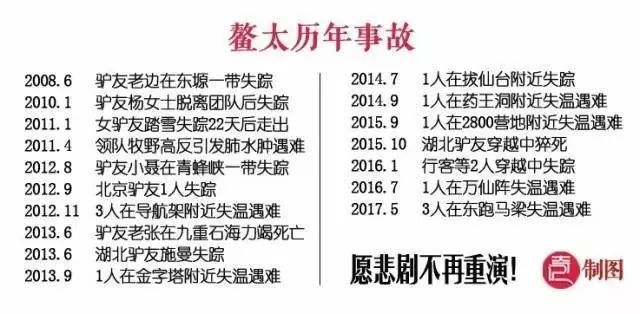 看到这个新闻报道,相信每一位驴友都会心疼和惋惜。但是,户外出行有风险,是我们每一位户外运动爱好者都心知肚明的事情。这样的户外事故,并不是个例。