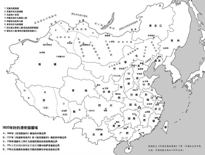 (图中A、B分别代表《尼布楚条约》《恰克图条约》定立的边界)