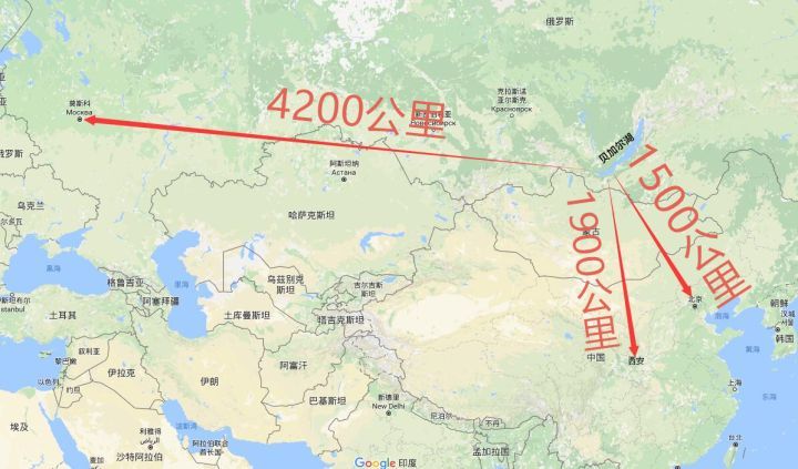 (圣彼得堡距离更远,地图源自Google,星球研究所标注)