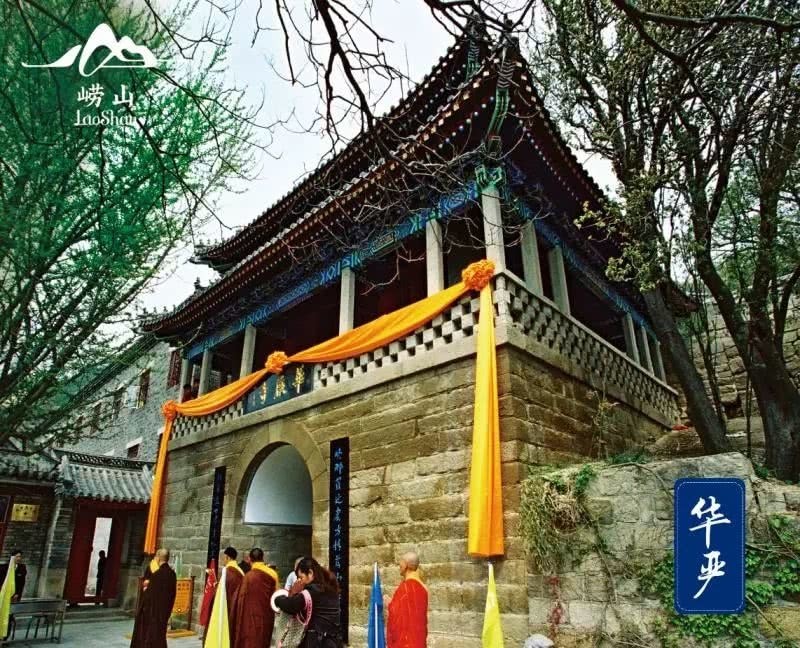 除道教外,崂山的佛教同样历史悠久。华严寺是崂山现存最大的佛教庙宇,它三面环山,东临大海,古朴典雅,华严寺建主殿三圣殿、东西两配殿以及天王阁。华严寺极盛时共有殿宇僧寮130余间,僧侣80余人,其寺庵布局严谨,结构精巧,殿宇崇宏,双层歇山,四角飞檐,古朴清雅。