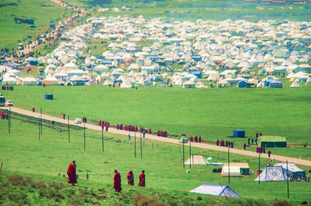 晒佛节,八方僧侣、信徒汇集而来朝拜、瞻仰;