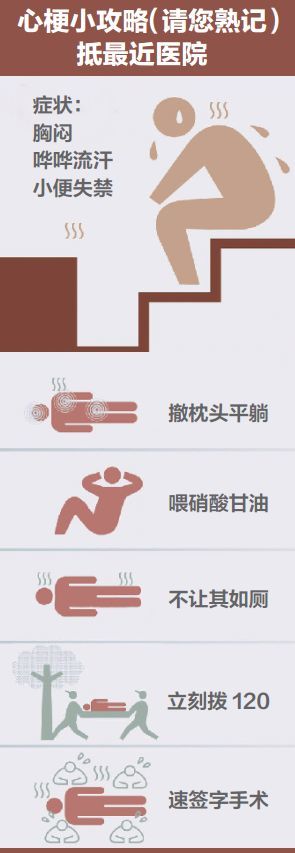 “你千万别动!马上躺下!”我命令他,并撤去了枕头,放松他的气道。【点评:心梗患者如果用枕头,很可能导致气道闭塞,丧失生存的机会】