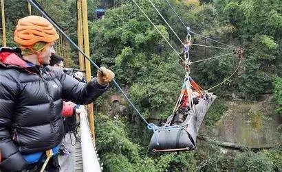 在不方便背负背包同时通过的狭隘地段或者湿滑、陡坡地段,可用绳索辅助采取人、包分离的方法分别通过。