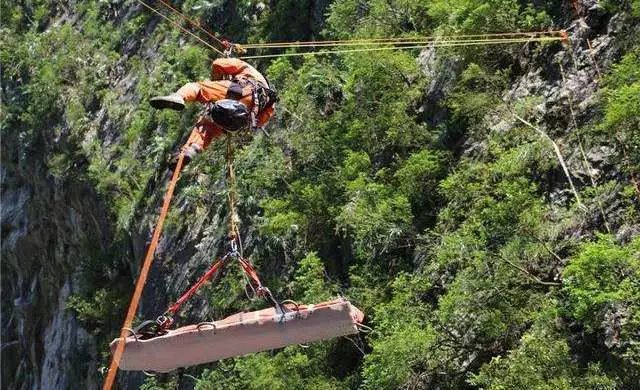 人员滑(跌)落沟壑后,可利用绳索实施救援。可根据实际情况可用多条绳索并联或者串联的方式。为更好的帮助人员的攀爬,可将绳索每隔50CM左右打一个绳结,长度一般控制在人体手臂长度以内,被施救者是女性的话可将绳结距离适当缩短。必要时,也可用多根绳索编结软梯。