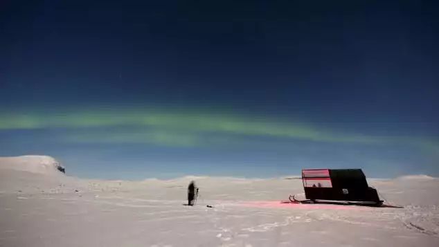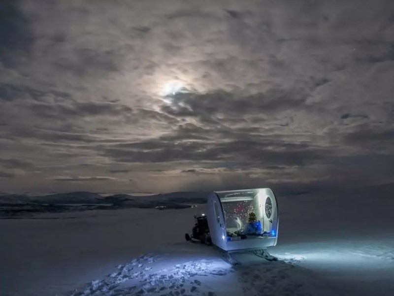 这项木屋极光之旅是这家公司最近刚刚开发的新产品,这个极富创意的团队将宽8英尺,长14.7英尺,高6.5英尺的便携式小木屋放置在雪橇上,每当极光季到来,他们便将这个独特的雪橇拉到最适宜欣赏极光的地方,等待客人的到来。