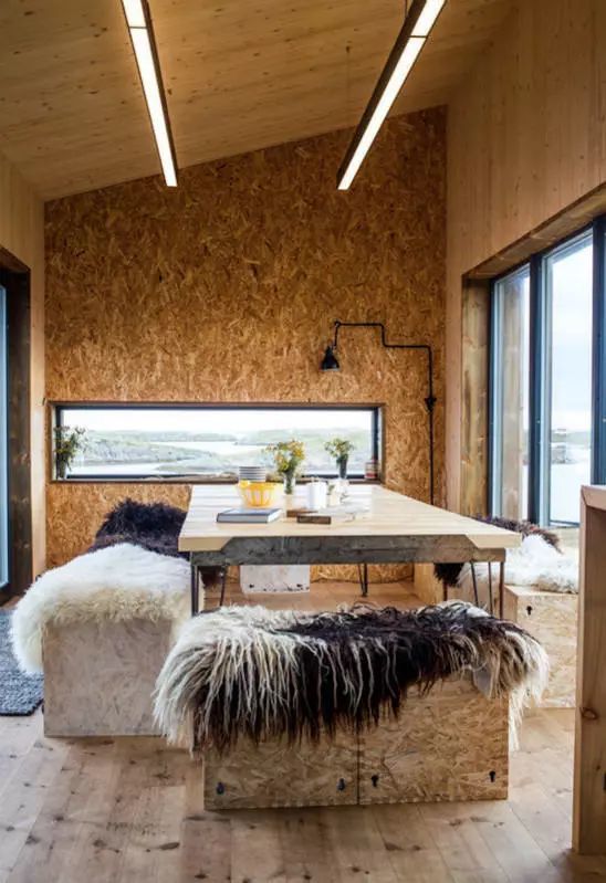 这些离群索居的屋子都拥有大片落地窗,木屋酒店的创始人HåvardLund 自豪地说:“我在这个地区长大,我们拥有美丽的地平线,拥有峻峭的山脉,拥有迷人的景色,拥有令人叹为观止的天色,因此每一间屋子都配有落地窗,以方便客人欣赏日出和日落。