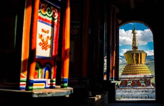 背靠祁连山的阿柔大寺它在雪山的映照下,显得圣洁又夺目,它的信众来往不断,而你也终会变成其一。