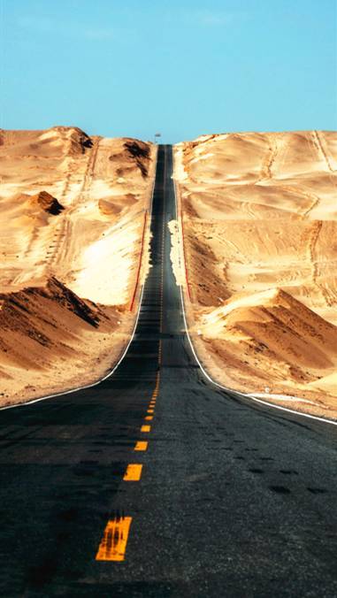 柴达木盆地,一眼望不到尽头笔直的数百公里的公路