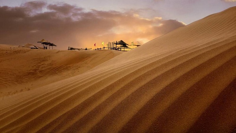 第二是湿度,湿度大了不响,如果雨后去滑,沙子就不响了。宁夏的沙坡头就是由于植树造林以后湿度增大而成了哑巴。可是,如果沙子太干,它也不鸣。敦煌的鸣沙山就是由于处在沙峰环抱之中的月牙泉的泉水枯竭而不鸣了。由此可见,若要出现“响沙”,湿度要适中。