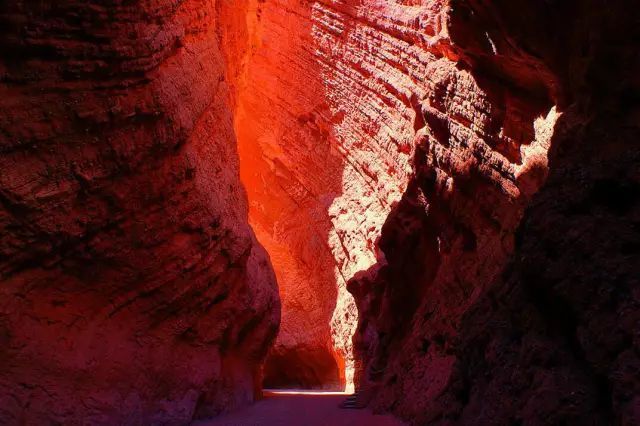 两侧的石壁,凹凸相对,如同女性曼妙的身姿。阳光投射进峡谷中,随着光线的变化,岩石上的色彩变幻无穷,尽显大自然的神奇。
