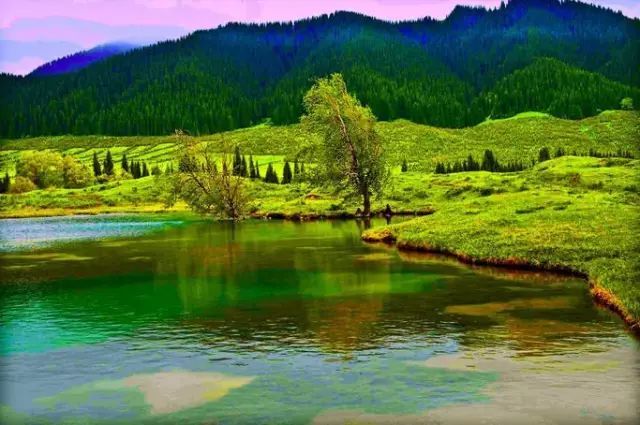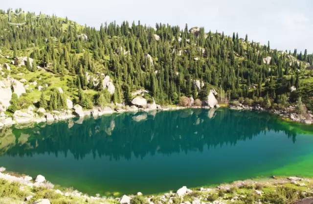 四周环山,池水由天山雪水融汇而成,大小龙池相映生辉。