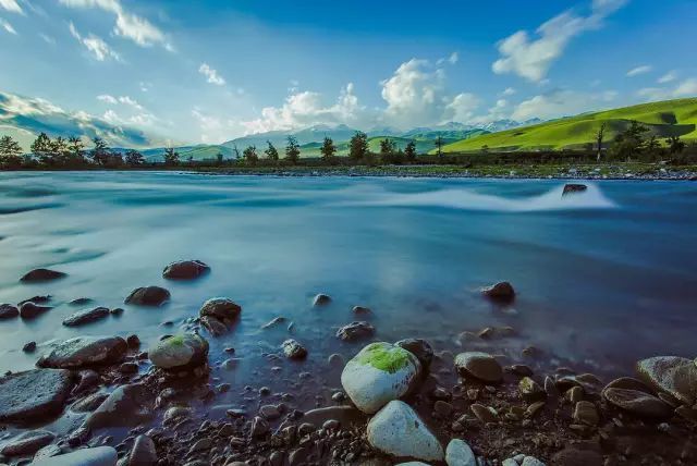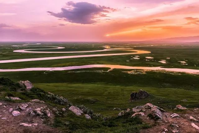 “九曲十八弯”的开都河,河谷开阔,河道蜿蜒,犹如走笔龙蛇,夕阳西下,更是可以看到九曲十八弯的落日。