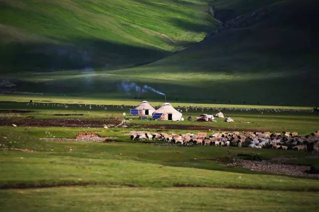 天鹅、湖水、山峰、牛羊 、牧民、毡房......构成一幅美丽的草原画。