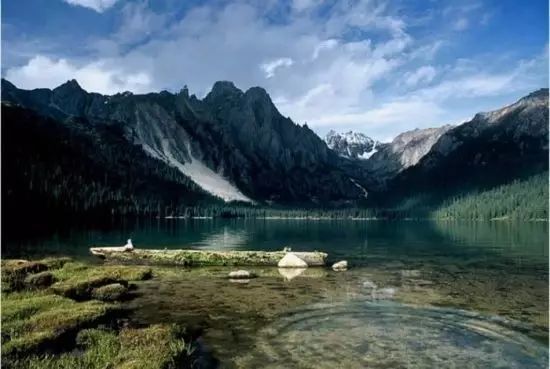 天气晴朗的日子里,天蓝得透彻,云白得像羊羔毛,群峰笼罩着两滴绿色的眼泪,远远看去,宛若两颗翠绿的翡翠镶嵌在大地之母上。