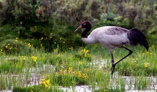 0.4平方公里相当于56个足球场大的措普湖,面向辽阔的章德大草原,三面被杉柏森森的原始森林包围着,湖中偶尔还有美丽的黑颈鹤。