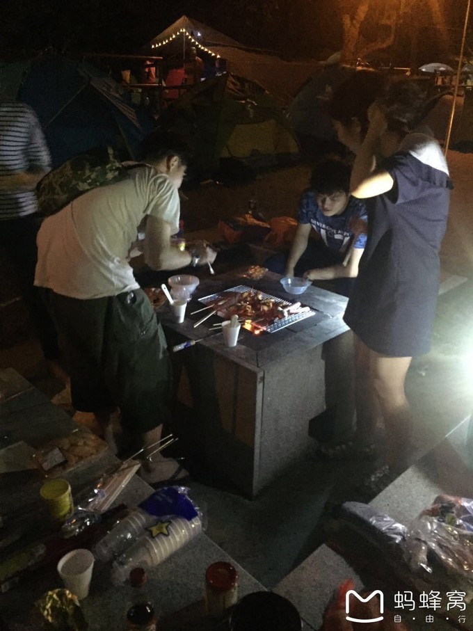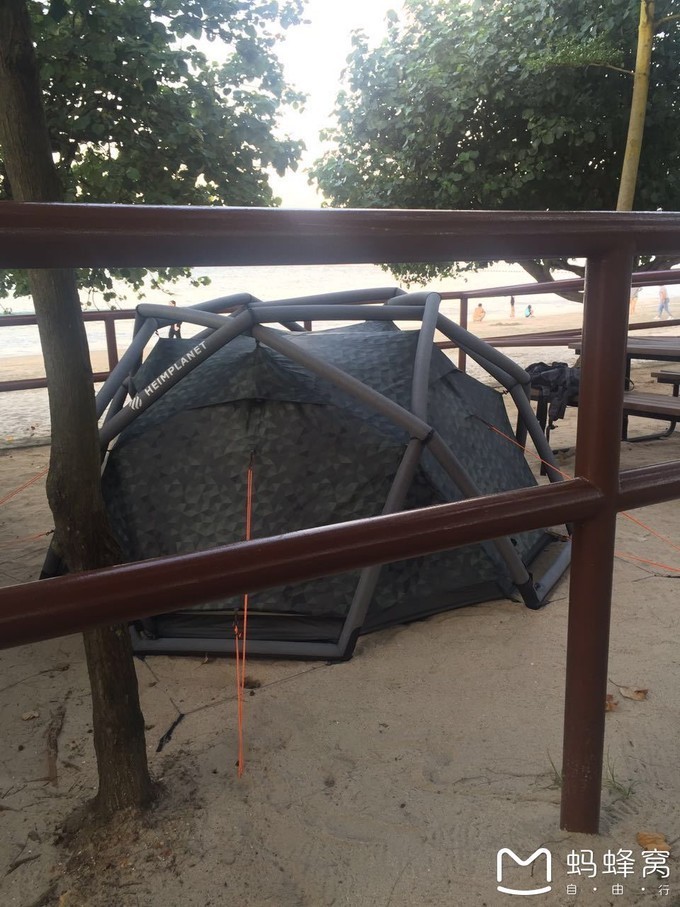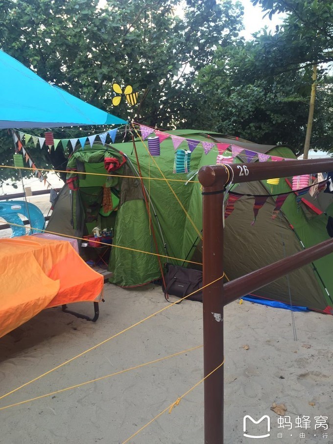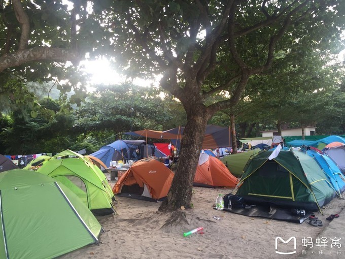 贝澳营地介绍:• 营地有52个卡位,卡位里是沙子,晚上是睡在沙子上的。整个营地很长,如果要了52号营地,上厕所会相当麻烦。路的一边是卡位,睡觉的地方,另一边是烧烤炉和凳子,供卡位里的人煮饭吃。• 每个营地是一个卡位,用钢管拦起来。出乎意料。这样大家不会在营地上乱搭帐篷,比较有秩序,贝澳营地旁边,还有一个沙滩,很多当地人来游泳,如果露营者乱搭帐篷,会占了沙滩的位置。每个营地里有一棵树,一张木桌子,两张长凳子,标准配置,每个卡位的对面,隔着小路,有一个烧烤炉,做饭用。每个卡位的标准配置是,卡位内桌椅一套,卡位内 大树 一棵,卡位对面烧烤炉一个,桌椅一套,路上路灯一个,垃圾箱一个,有的卡位,还有凉亭一个。不用担心会和别人抢炉子用,抢凳子坐,每个卡位都设施齐备,各用各的。卡位对面的桌子,凳子,属于各个卡位的标准配置,做完饭后,端到这里来吃。烧烤炉是石头做的,做饭可以,坐在上面吃饭,就太凉了。水源在12号营地,每个卡位拥有一个路灯,一个垃圾箱,28号营地就还特别拥有一个小凉亭,白天的时候,可以坐在下面聊天。最后当然是一大片沙滩了,任你玩水嬉戏,有救护员当值,不过得注意安全