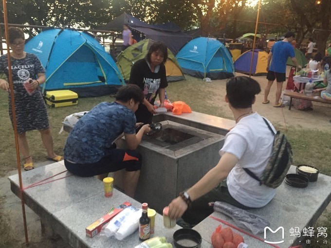• 每个营地是一个卡位,用钢管拦起来。出乎意料。这样大家不会在营地上乱搭帐篷,比较有秩序,贝澳营地旁边,还有一个沙滩,很多当地人来游泳,如果露营者乱搭帐篷,会占了沙滩的位置。每个营地里有一棵树,一张木桌子,两张长凳子,标准配置,每个卡位的对面,隔着小路,有一个烧烤炉,做饭用。每个卡位的标准配置是,卡位内桌椅一套,卡位内 大树 一棵,卡位对面烧烤炉一个,桌椅一套,路上路灯一个,垃圾箱一个,有的卡位,还有凉亭一个。不用担心会和别人抢炉子用,抢凳子坐,每个卡位都设施齐备,各用各的。卡位对面的桌子,凳子,属于各个卡位的标准配置,做完饭后,端到这里来吃。烧烤炉是石头做的,做饭可以,坐在上面吃饭,就太凉了。