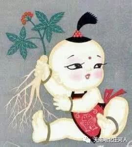 棒槌是人参的俗称。人参是东北地区特产的名贵药材,具有补五脏,安精神,止惊悸,除邪气,明目,开心,益智,轻身延年,大补元气的功效。古有“七两为参,八两为宝”之说。一般六品叶以上的人参,需生长十几年乃至上百年。几百年以上的人参,就是传说中的人参精了。人们把它神化为戴着红肚兜的小男孩,或者头插红花的小姑娘以及白须老翁。得之,能够延年益寿,长生不老。