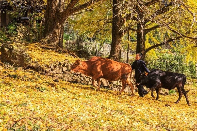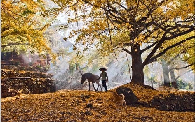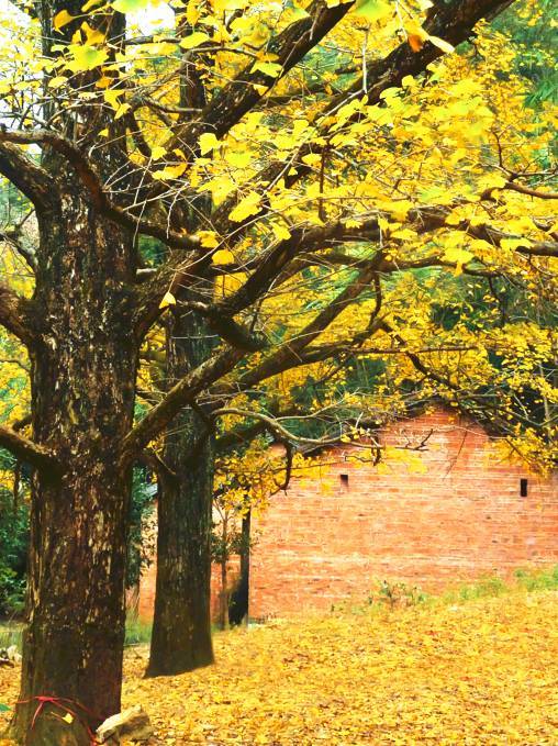 在这个有着两千多年历史的古老乡村里,耸立着无数棵高大的银杏树,一到深秋,便“满城尽带黄金甲”。